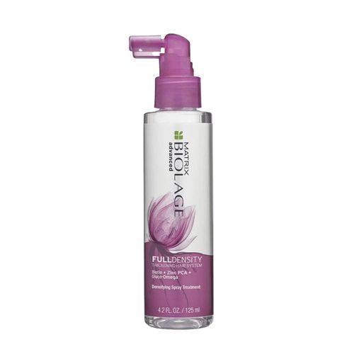 Advanced Full Density Densifying Spray Leavin-In Treatment, formulated with biotin, zinc PCA and Gluco-Omega Blend, works on hair's surface (wet or dry) to increase the diameter of existing strands by up to 9%, for fuller-looking, thicker-feeling hair.